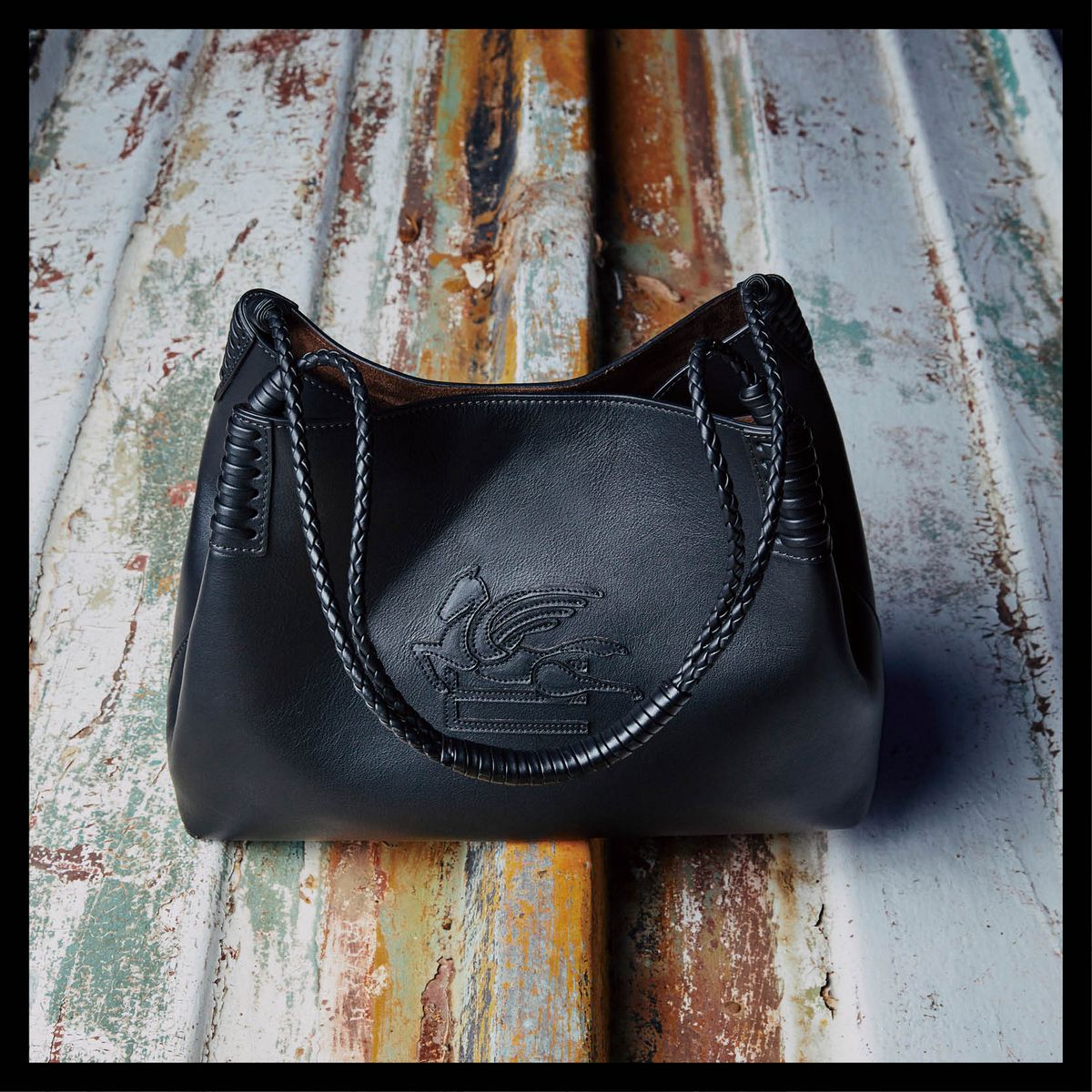 에트로의 아이코닉 모티브와 로고를 하우스의 장인 정신을 통해 표현한 백. 아르니카 패턴과 솔리드 컬러 2가지 버전으로 선보인다.