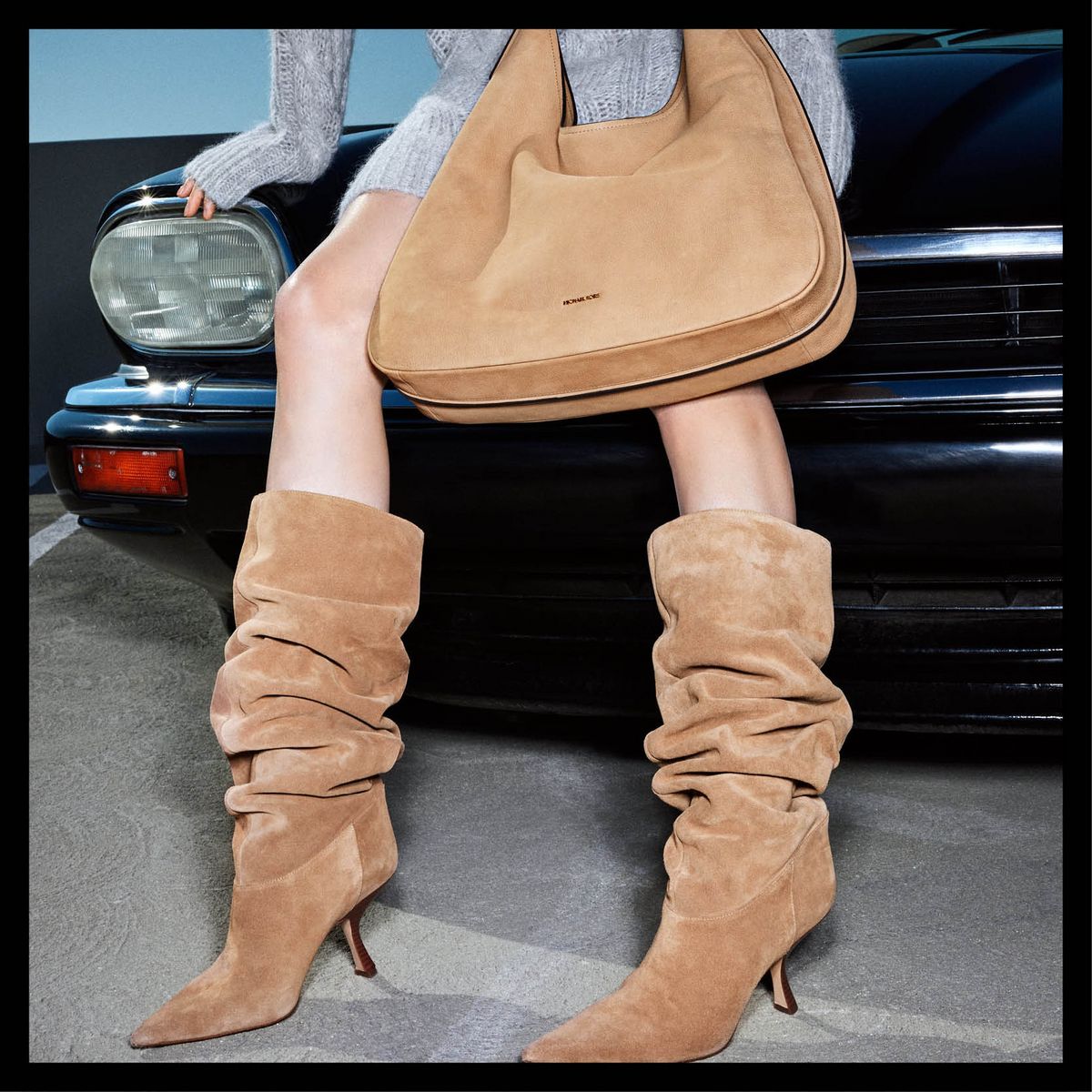 이번 시즌 트렌드로 떠오른 슬라우치 부츠를 찾고 있다면 눈여겨보길. 부드러운 스웨이드 소재와 독특한 곡선 셰이프힐이 포인트!