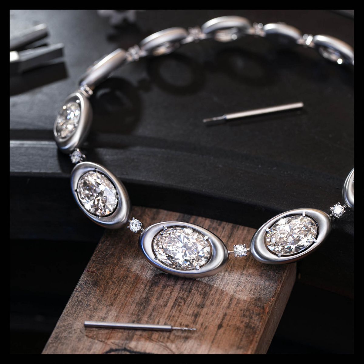 클래식한 다이아몬드 초커를 현대적인 감각으로 재해석했다. 빅 사이즈의 다이아몬드를 세팅해 볼드한 매력을 발산한다.
