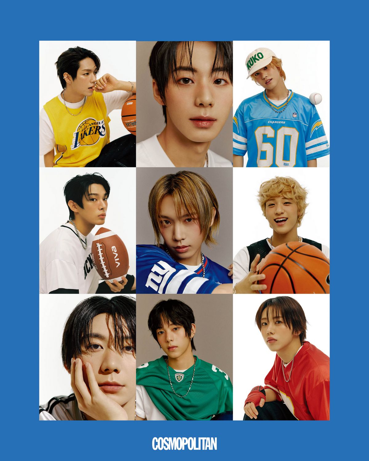 (왼쪽 위부터 시계 방향으로, 즈언)풋볼 티셔츠 Thisisneverthat. 데님 팬츠 Travel. 이너 톱, 목걸이 스타일리스트 소장품. (박주원)풋볼 티셔츠 New Era. 이너 톱, 목걸이, 팔찌 스타일리스트 소장품. (서정우)풋볼 티셔츠 Thisisneverthat. 데님 팬츠 51percent. 이너 톱, 목걸이 스타일리스트 소장품. (차웅기)풋볼 티셔츠 Cotchs. 이너 톱, 목걸이 스타일리스트 소장품. (스티븐)풋볼 티셔츠 New Era. 데님 팬츠 51percent. 이너 톱, 목걸이, 팔찌 스타일리스트 소장품. (위부터 시계 방향으로, 장슈아이보)풋볼 티셔츠 New Era. 데님 펜츠 Gubin. 이너 톱, 목걸이 스타일리스트 소장품. (박한)풋볼 티셔츠 Hdex. 데님 팬츠 Waikei. 이너 톱, 목걸이 스타일리스트 소장품. (다이스케)슬리브리스 톱 Nba. 이너 톱, 목걸이 스타일리스트 소장품. (제이엘)슬리브리스 톱 Nba. 데님 팬츠 Wkndrs. 슈즈 Converse. 이너 톱, 귀고리, 목걸이, 팔찌, 반지, 양말 스타일리스트 소장품.