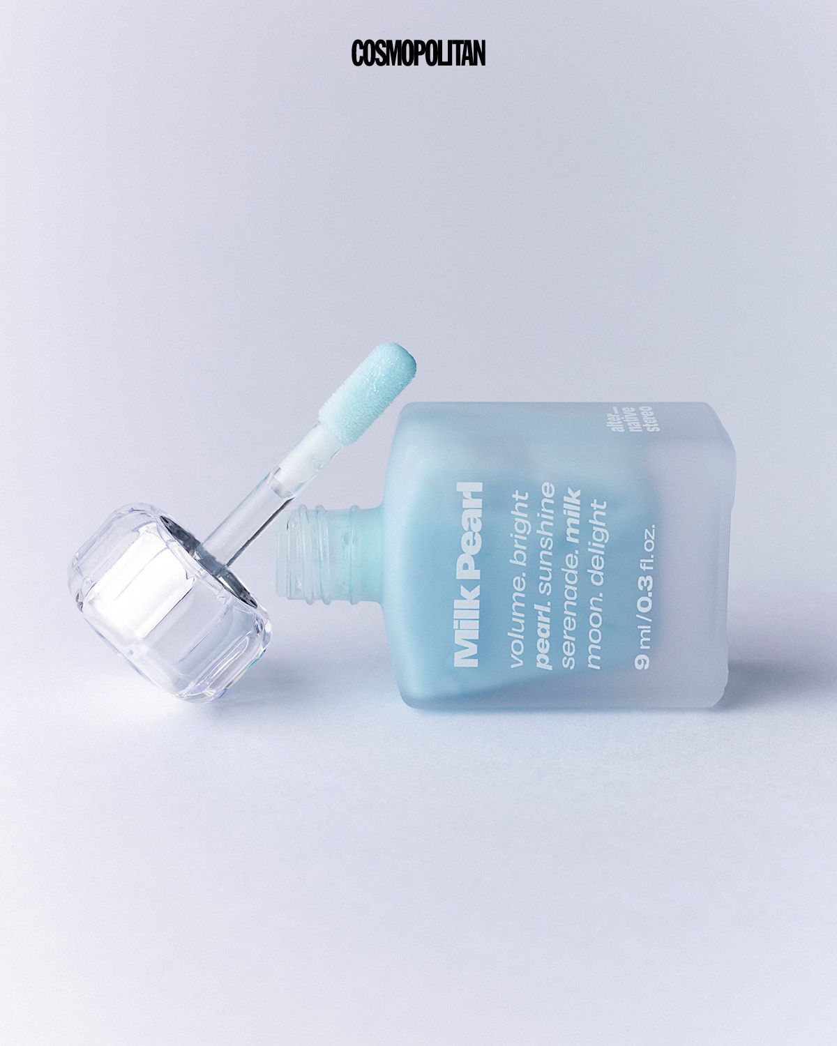 은빛 펄이 은은하게 반짝이는 하늘빛 립글로스. 플럼핑 효과로 바르는 순간 입술이 도톰해지며 즉각적인 볼륨감을 선사한다. 맑은 우윳빛 발색으로 진한 립 컬러 위에 올리면 소프트한 파스텔 톤으로 바꿔준다. 립 포션 밀크 펄 글로스 #01 소다문 1만9천원 Alternative Stereo.
