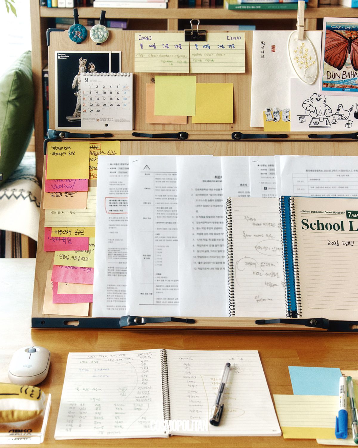 다양한 비주얼 레퍼런스가 가득한 책상.