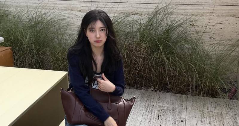 금새록은 블랙 컬러의 재킷에 그레이 톤의 니트 팬츠를 매치하고 톤다운된 레드 컬러의 카디건을 이너로 매치했어요.