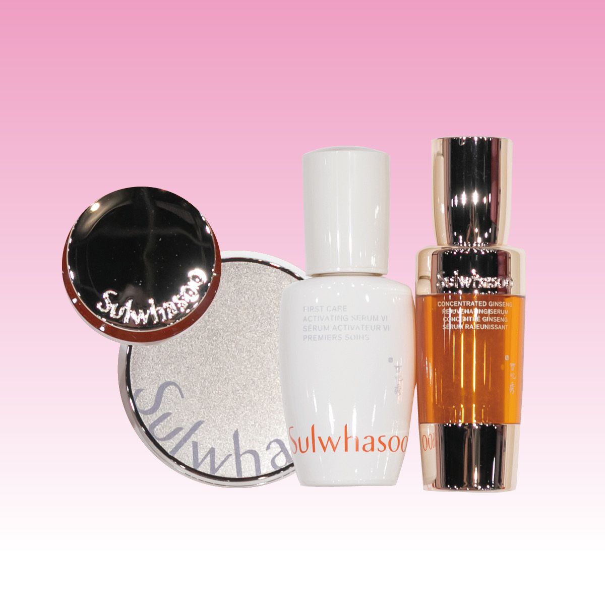 후원 브랜드인 설화수의 제품 옆에서 사진을 찍는 독자.
