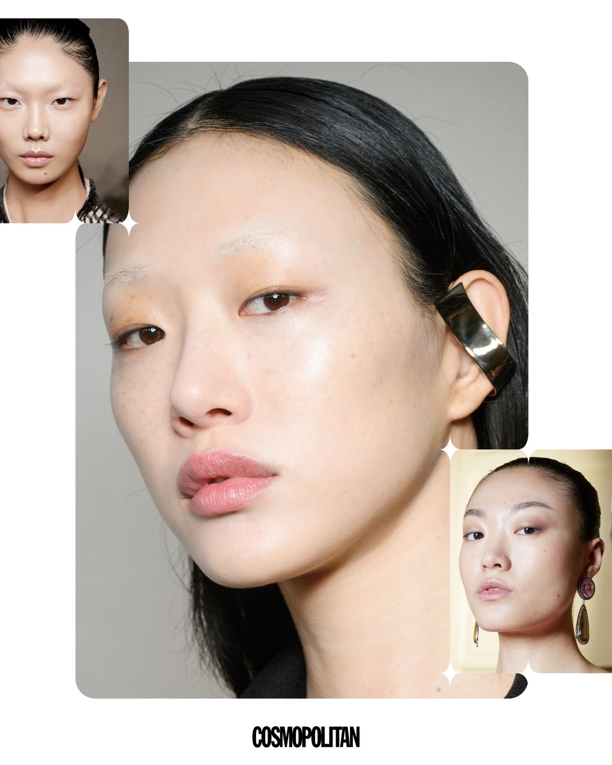 뷰알못도 하이라이터 하나만 잘 쓰면 본투비 투명한 광채와 볼륨감을 만들 수 있다. 그만큼 하이라이터는 작은 터치만으로도 얼굴에 생기를 주고 분위기를 바꿀 수 있는 아이템! 입문자라면 양 볼 윗부분과 콧대, 눈 앞머리에 살짝 쓸어주듯 바르기만 해도 광채가 예쁘게 표현된다. 브러시를 사용해도 좋지만 손가락 끝이나 퍼프를 이용해 블렌딩하면 과해 보이지 않고 피부와 자연스럽게 어우러지는 광채를 연출할 수 있다. 이번 2025 F/W 컬렉션에서도 하이라이터의 활용법이 다양하게 포착됐는데, 꾸레쥬 쇼에 오른 모델 최소라의 뷰티 룩을 참고하길. 깨끗한 피부 표현을 바탕으로 눈썹 뼈 아래와 볼 위쪽, 코끝에 하이라이터를 발라 내추럴한 시머 광을 연출해 어느 각도에서 봐도 피부가 화사해 보이는 룩을 완성했다. 그런가 하면 디올과 생 로랑 쇼에서는 화이티한 밑 발색에 펄이 더해진 하이라이터를 이마와 C존에 넓게 발라 완벽한 3D 입체 페이스로 생기 오라를 발산했다. 바야흐로 하이라이터 전성시대, 지금이야말로 얼굴에 은은한 빛을 물들여야 할 타이밍이다.