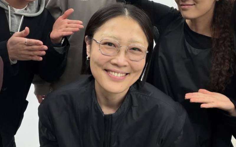 전체적으로 잔잔하지만, 립 하나로 분위기를 확 살리는 김도아의 글로우 립 메이크업. 포인트는 바로 토끼혀 립입니다. 투명한 연핑크 컬러 위로 유리알처럼 맑은 광이 더해져 어두운 공간에서도 자체 발광하듯 빛나요. 촉촉한 광택이 얼굴에 입체감과 여리여리한 무드를 더해주는 것도 놓칠 수 없는 포인트! 아이 메이크업은 블랙 아이라이너로 정리해 립의 청초함을 돋보이게 했고, 블러셔는 핑크 코랄 톤으로 은은한 생기를 더했어요.