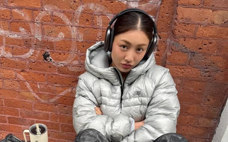 채원의 오렌지 스파게티 헤어를 포근히 감싸준 건 바로 크로셰 비니! 포슬포슬한 실의 질감이 겨울 분위기를 제대로 살려주며, 블랙 컬러로 헤어 톤을 안정감 있게 잡아준 것이 포인트인데요. 손뜨개 느낌이 살아 있어 스타일링에 따뜻한 텍스처를 더해주죠.