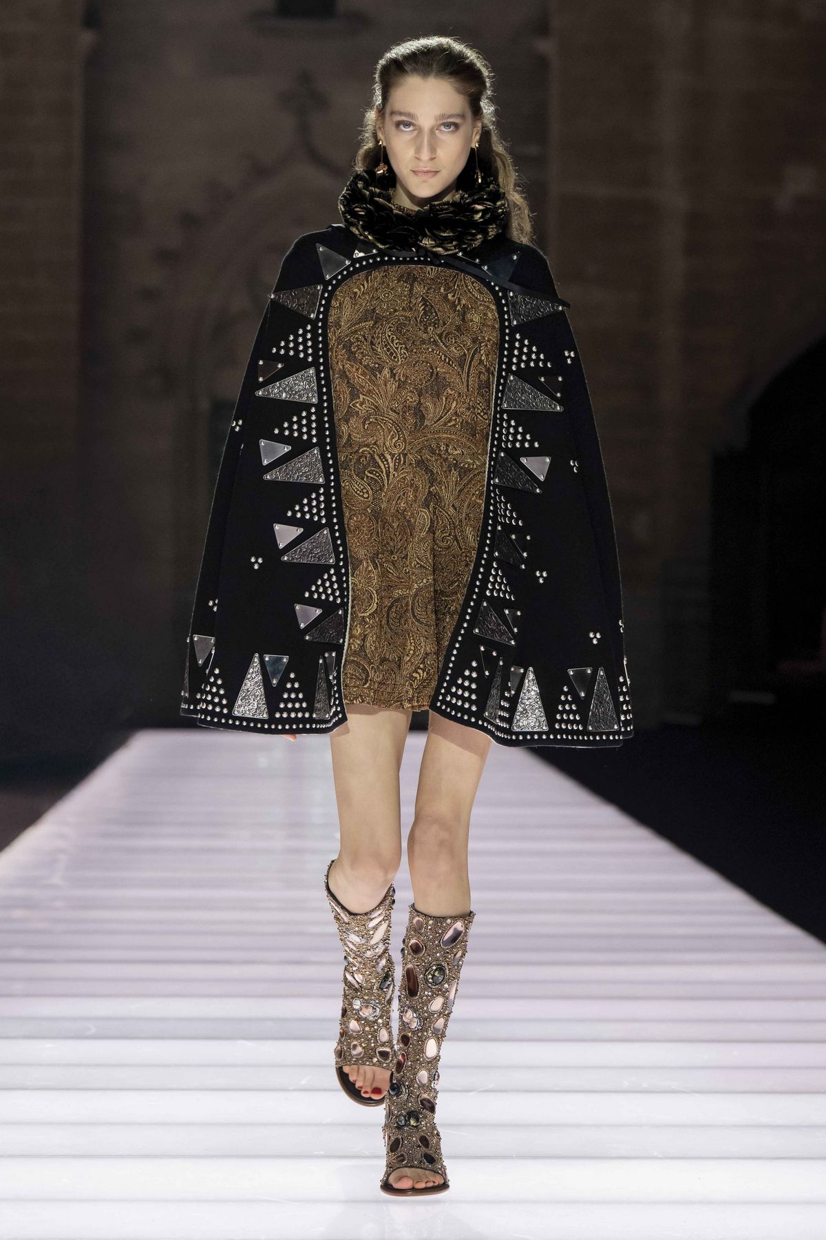 늘 전형적인 장소에서 탈주해 런웨이 예술을 보여주던 루이 비통은 14세기에 지은 프랑스 아비뇽의 교황청, 팔레 데 파프를 선택했다. 유럽 최대의 고딕 궁전이자 올해 유네스코 세계문화유산 등재 30주년을 맞은 이곳은 오늘날 실험적인 연극 축제가 열리는 무대로도 잘 알려졌다. 쇼가 열린 교황청의 중심부 쿠르 도 뇌르엔 옥좌를 연상케 하는 붉은 의자들이 설치됐고, 브리지트 마크롱, 케이트 블란쳇, 엠마 스톤 등 유명 게스트들이 장엄함이 내려앉은 이 자리에 앉았다. 크리에이티브 디렉터 니콜라 제스키에르는 늘 그렇듯, 역사성과 미래주의를 뒤섞은 룩으로 마법 같은 컬렉션을 선보였다. 황홀한 금사 자카드 웨어, 주얼 장식을 더한 부츠, 구조적인 실루엣 등 모델들은 먼 행성에 불시착한 중세 여인을 보는 듯했다.