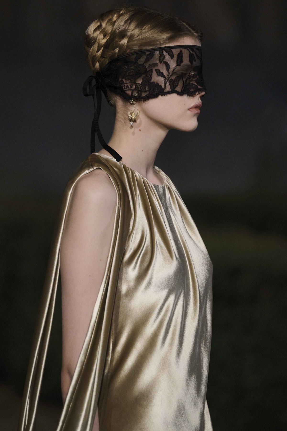 마리아 그라치아 키우리는 디올 하우스에서의 마지막 쇼를 위해 처음으로 자신의 고향인 로마로 향했다. 장소는 고대 그리스·로마 유물을 소장한 빌라 알바니 토를로니아다. 당대 최고 예술 후원자인 알레산드로 알바니 추기경의 컬렉션을 보관하기 위해 지은 이 빌라는 현지인조차 쉽게 발을 들일 수 없는 미지의 공간이자 패션 이벤트가 열린 사례는 더욱 드문 개인 소유지다. 베일에 가려진 비밀 정원을 따라 레이스 마스크를 쓴 모델들이 워킹을 시작할 때 번개와 폭우, 어두워진 하늘이 겹쳐지며 이 낯선 풍경은 더욱 신화적으로 변했다. 섬세한 깃털과 자수, 실크로 완성한 드레스 퍼레이드는 ‘시간이 멈춘 순간, 아름다운 혼란’이라는 테마와 완벽히 맞물렸다. 행렬이 끝난 뒤 키우리가 모습을 드러내자 기립 박수와 함께 거짓말처럼 비가 멈추며 디올에서의 9년간의 여정이 막을 내렸다.
