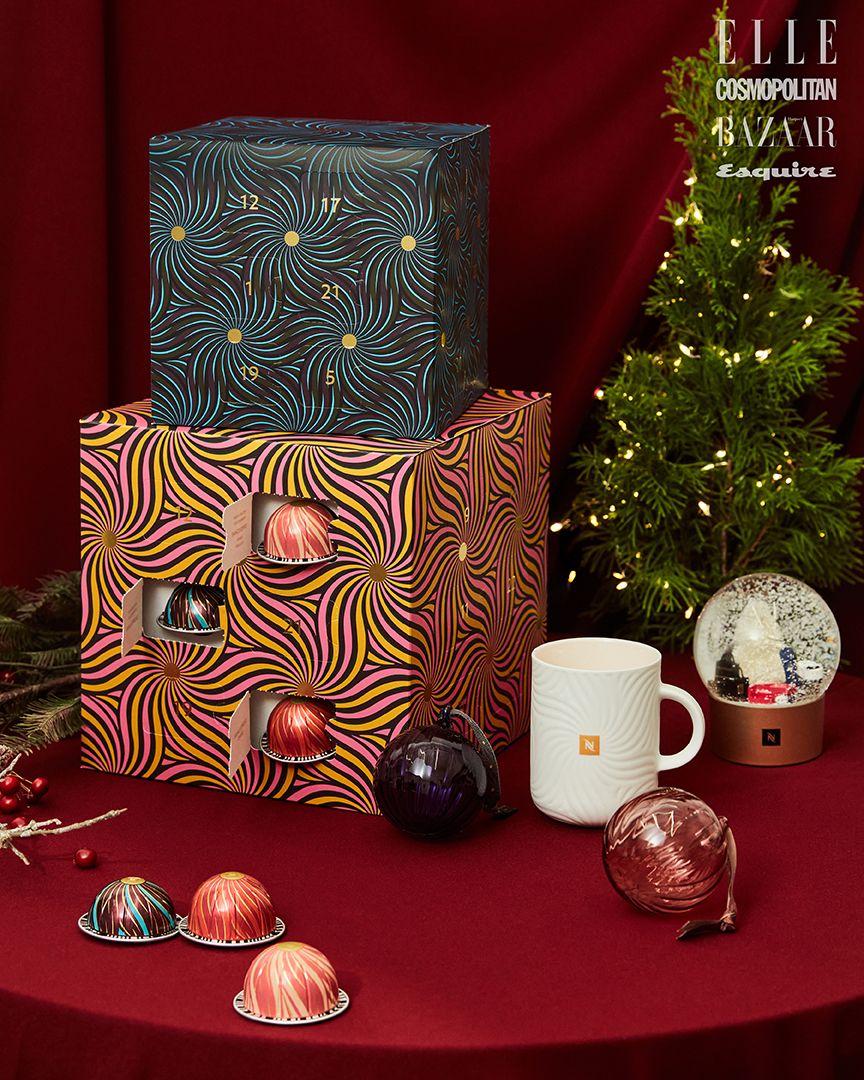 홀리데이 시즌을 맞아 선보이는 버츄오 페스티브 3종과 하루에 하나씩 열어보는 재미가 있는 어드벤트 캘린더. 버츄오 어드벤트 캘린더는 6만5천원, 버츄오 페스티브 더블 에스프레소는 9천5백원, 버츄오 페스티브 아몬드 히비스커스향 커피는 1만2천원, 버츄오 페스티브 시나몬 타마린드향 커피는 1만2천원 모두 NESPRESSO.