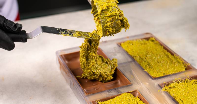 일부 업자는 본래 재료와 요리법에서 벗어난 제품을 판매하기도 합니다. 카다이프 면 대신 두꺼운 소면을 쓰거나 피스타치오 페이스트가 아닌 다른 크림을 사용하죠. 맛이 있을 수가 없죠. 온라인에 '두쫀쿠 사기'를 검색하면 피해 사례를 쉽게 찾아볼 수 있습니다. 재료를 공수하기 어려워지자, 비슷한 맛을 낼 수 있는 다양한 방법도 등장했습니다. 가장 간단한 방법은 시중에 파는 찰떡파이에 피스타치오 스프레드를 넣는 겁니다. 두쫀쿠 맛의 70% 정도를 구현할 수 있고 초코파우더를 뿌려 냉동실에 잠깐 넣어두면 식감도 비슷해집니다. 카다이프 대신 쵸코하임을 부숴 넣는 방법도 있어요.