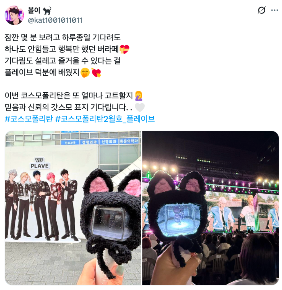 첫 콘서트부터, 일상 속 특별한 기억까지 어떤 플리에게는 플레이브가 인생 첫 콘서트였고, 또 어떤 플리에게는 하루를 버티게 해준 일상 속 특별한 순간이었어요. 그리고 이런 고백도 있었습니다.