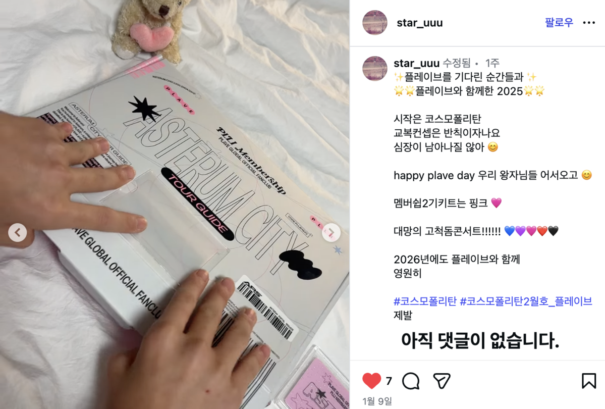 이벤트에 올라온 순간들은 단순 인증샷이 아니었습니다. 플레이브를 기다리며 보낸 시간, 티켓팅하는 순간, 굿즈를 받던 날의 설렘까지. 플레이브는 무대 위뿐 아니라 플리들의 일상에도 계속 등장하고 있었죠.