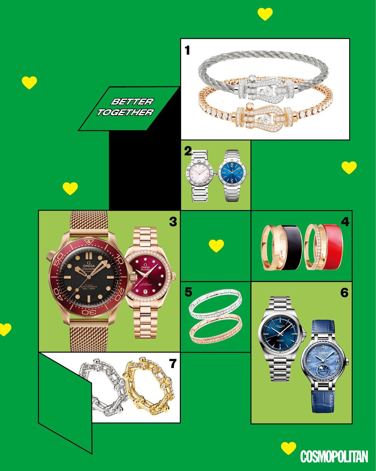 같이 하면 커플템, 따로 하면 포인트인 다미아니의 브레이슬릿, 레이어링에 따라 데일리는 물론이고 특별한 나이트까지 아우르는 오메가 워치 등, 환상의 워치&주얼리 페어를 찾는다면 바로 여기로!