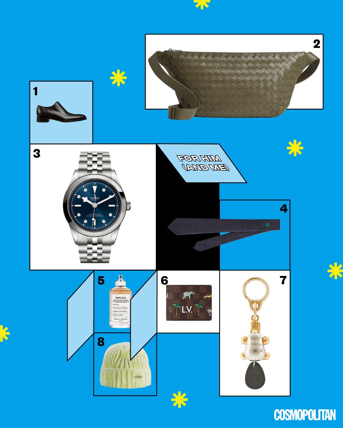 1 클래식한 디자인의 레이스업 로퍼 2백12만원 Gucci. 2 인트레치아토 기법을 적용한 데이 슬링 백 4백30만원 Bottega Veneta. 3 기하학적인 아워 마크가 특징인 블랙 베이 원 41 70백96 만원 Tudor. 4 클로버 자수 장식 넥타이 37만원 Dior Men. 5 따뜻한 커피에 부드러운 밀크 무스 향을 가미한 커피 브레이크 오 드 뚜왈렛 22만원 Maison Margiela Perfume. 6 애니멀 프린팅 지갑 92만원 Louis Vuitton. 7 오리 너구리 키링 1백10만원 Loewe. 8 헤어리 울 비니 9만6천원 Atiissu.