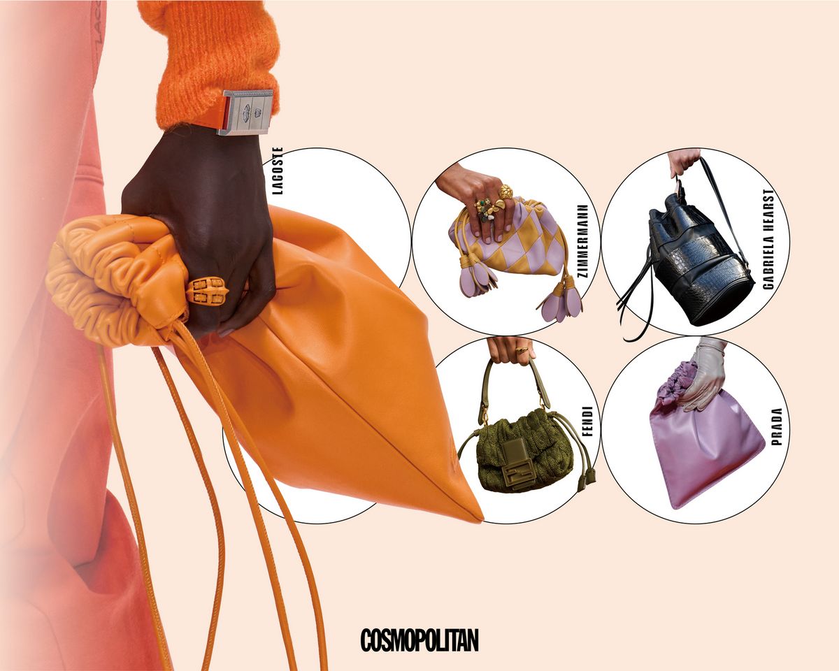 가볍게 조여 묶는 단순한 구조지만, 손에 쥐는 순간 의외로 또렷한 인상을 주는 드로스트링 백에 주목하자. 과장되지 않으면서 스타일의 결을 정돈해주는 이번 시즌 가장 영리한 선택지다. 특히 프라다의 파우더리 핑크부터 마리골드, 라일락 등 다채로운 컬러의 드로스트링 파우치가 조용히 스포트라이트를 차지했다. 간결한 실루엣의 가브리엘라 허스트는 클래식하지만 모든 룩에 어우러져 데일리 백으로 부담 없이 즐길 수 있다. 지금 쇼핑을 고려한다면, 펜디의 딥한 그린 컬러의 백부터 짐머만의 컬러 배색 패턴의 백까지 선택지는 다양하다.