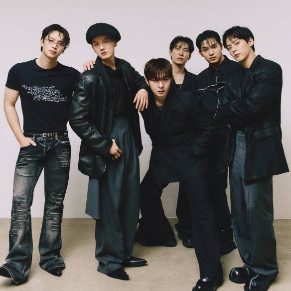(왼쪽부터, 임현식)코트 Sulvam by Adekuver. 셔츠, 팬츠 스타일리스트 소장품. (이민혁)재킷, 팬츠 모두 Eenk. 이너 톱 스타일리스트 소장품. (이창섭)이너 톱 Neu_in. 재킷, 팬츠, 벨트 스타일리스트 소장품. (서은광)레더 재킷, 팬츠 스타일리스트 소장품. (프니엘)재킷, 블라우스, 팬츠 모두 Neu_in. 장갑 Seokwoon Yoon. 귀고리 스타일리스트 소장품. (육성재)재킷 Sankuanz by Adekuver. 이너 톱, 데님 팬츠 스타일리스트 소장품.