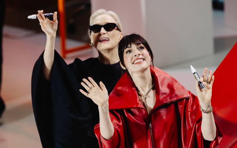한소희는 블랙 7부 니트에 새틴 소재의 인디 핑크 셔츠를 매치해 도시적이면서도 은은하게 사랑스러운 룩을 완성했습니다. 니트의 매트한 질감과 셔츠의 은은하게 빛나는 새틴 소재가 대비를 이루며 룩에 깊이를 더해주는데요. 이처럼 서로 다른 텍스처를 레이어드하면 단순한 코디도 훨씬 고급스럽게 보이는 효과가 있죠. 또 핑크 셔츠는 얼굴 톤을 자연스럽게 밝혀주며 부드러운 인상을 만들어주고, 블랙 니트가 전체적인 밸런스를 잡아줍니다. 여기에 생지 데님을 매치해 과하게 꾸민 느낌 없이 담백하게 정리할 수 있어요.