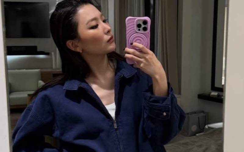 그레이 가디건을 착용한 패션 인플루언서 아미송 인스타그램 @aimeesong