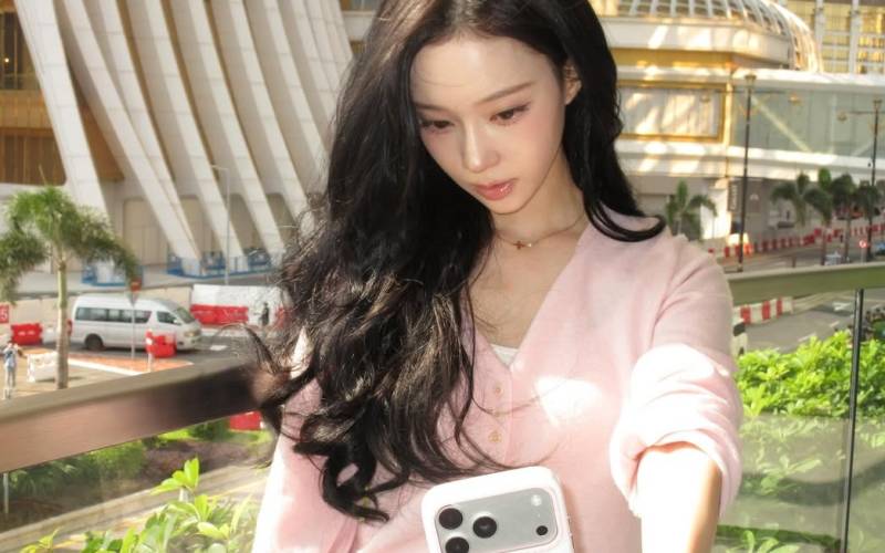 2026 컬러인 클라우드 댄서를 활용한 가디건 스타일링을 선보인 패션 인플루언서 아미송. 라이트 그레이 컬러 슬리브리스 집업과 와이드 팬츠로 완성한 미니멀 셋업에 다크 그레이 가디건을 허리에 자연스럽게 묶어 포인트를 더했습니다. 가방 또한 파스텔 블루 컬러로 포인트를 주되, 전체적으로 톤온톤에 가까운 뉴트럴 팔레트를 유지해 안정감을 선사합니다. 다만 허리 부분의 가디건으로 컬러 대비를 주어 단조로움을 탈피한 것이 특징입니다.
