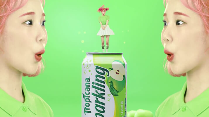 흥 많은 멤버로 유명한 그룹 모모랜드의 주이가 단독으로 촬영한 CF로 올해 가장 화제가 된 광고. 오렌지, 포도, 사과, 망고 등 과일 별로 다른 버전의 막춤을 선보이며, 막춤 하나로 무한도전까지 출연했던 주이의 막춤 인기를 뒷받침하듯 엄청난 조회수를 자랑한다. “사과 톡톡톡~ 트로피카나” 멘트와 막춤의 최강 콜라보로 광고 스킵을 멈추게 만드는 마성의 병맛 곡.
