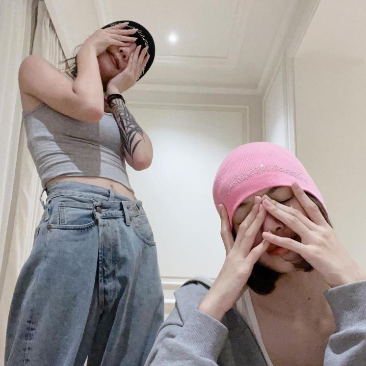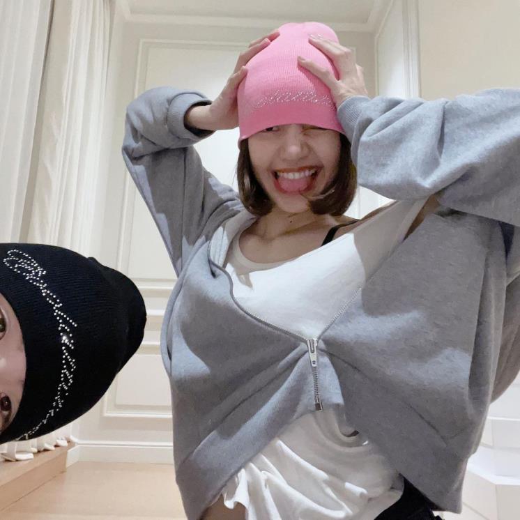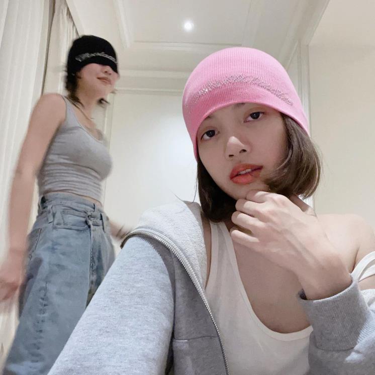 리사는 글리터 비즈로 문자가 새겨진 비니를 착용하곤 역대급 대세 트렌드인 Y2K 스포티룩을 연출했다. 아울러 후디 톱과 스타일링해 최근 유행인 ‘걸스힙합’까지 놓치지 않았다. 또 그는 다소 심심해 보일 수 있는 그레이, 화이트 등 무채색 의상에 대응해 비니 컬러를 핑크로 선택, 똑똑하게 계산한 스타일링을 선보였다.