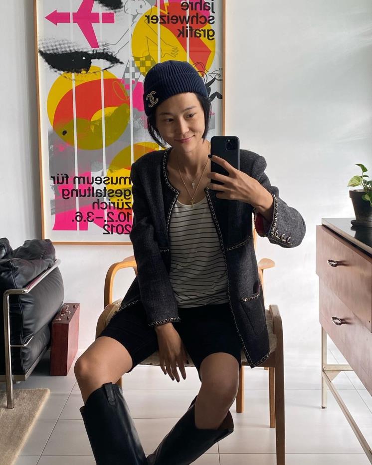트위드 재킷에 비니를 매치한 김나영. 그는 시크한 트위드 재킷에 비니를 매치해 발랄함을 더했다. 특히 비니를 톤 다운된 무채색으로 선택해 고급스러운 매력을 잃지 않았다. 여기에 쇼츠와 롱부츠를 스타일링하며 이토록 짧은 간절기를 한층 즐기는 패션피플의 모습을 보여줬다. 이너 톱의 네크 라인은 답답하지 않은 U넥인 것도 주목할 것. 맨살의 비중까지 철저히 계산한 스마트한 룩이다.