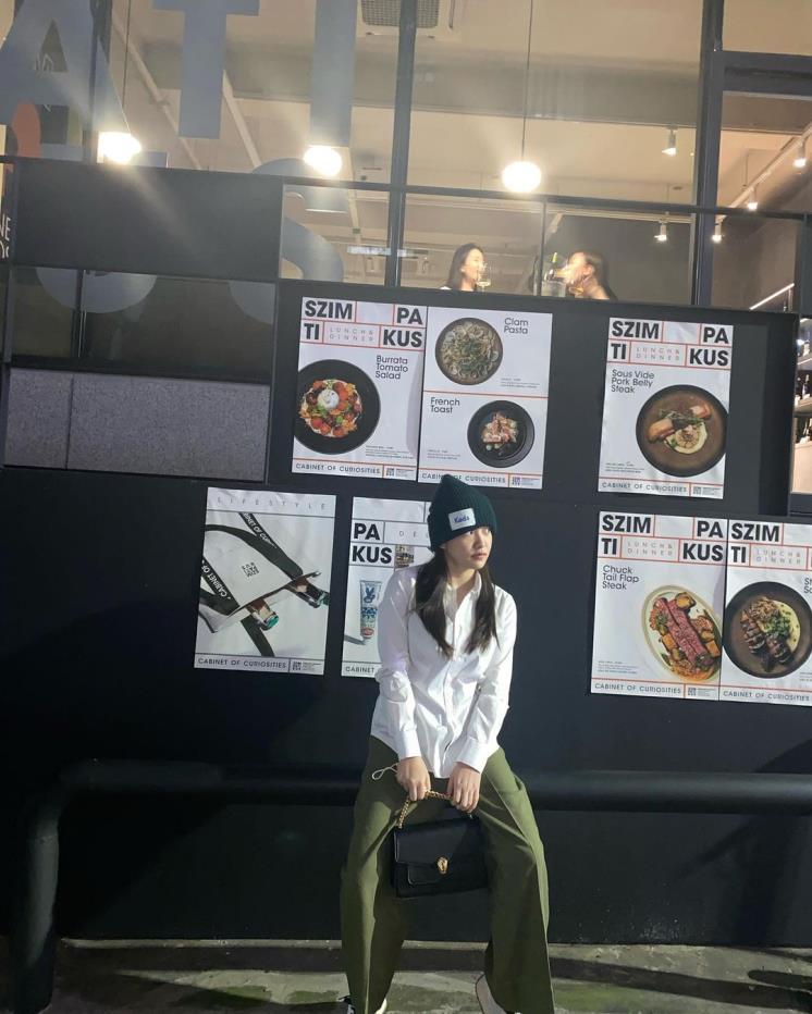 화이트 셔츠에 와이드 팬츠, 그리고 손에는 체인 핸들이 달린 핸드백. 예리는 이 포멀한 오피스룩에 투박한 비니를 매치해 힙한 캐주얼룩을 완성했다. 이때 셔츠의 맨 위 단추는 2~3개 즈음 풀고 밑단은 바지 위로 빼줄 것. 답답하지 않게, 살짝 긴장을 늦춘 예리의 애티튜드가 이 룩의 완성도를 높였다.