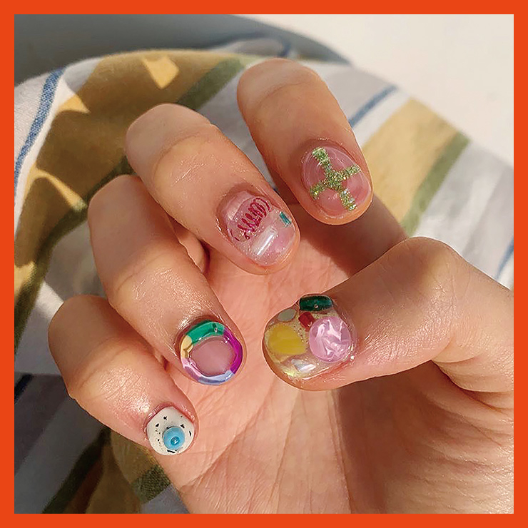 」작년부터 쭉 인기 있는 덩어리 네일은 열 손가락 모두 화려하고 키치한 아트로 가득 채우는 만큼, 베이스는 시스루로 이질감을 줄이는 디자인이 많다. 심지어 열 손가락 모두 다른 입체 디자인으로 고를 수 있는 오마카세 네일까지 등장! 내 맘대로 조합하다 보면, 액세서리가 따로 필요 없는 확실한 포인트가 돼준다.