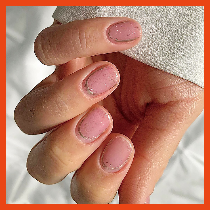 」시크한 메탈 컬러가 이렇게 우아할 수 있다고? 실버나 골드 폴리시를 이용한 라인 아트가 올봄 네일의 메가 트렌드! 손톱 테두리를 모두 채우는 실버 링 디자인을 가장 많이 볼 수 있다. 라인만으론 허전한 기분이 든다면, 미세한 글리터를 더해보자. 햇빛이 비칠 때마다 은근하게 빛나 또 다른 매력이 있다.