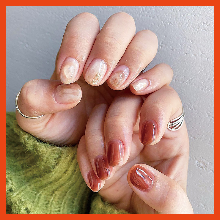 」폴리시를 풀콧으로 발라도 시스루 네일을 연출할 수 있는 투명한 시럽 폴리시. 은은하고 오묘한 느낌 때문에 날씨가 따뜻해지면 찾는 사람이 더욱 많아진다고. 최근엔 쨍한 컬러의 원색 시럽 폴리시도 쉽게 찾아볼 수 있다. 양손의 컬러를 다르게 매치하면 별다른 아트 디자인을 더하지 않아도 세련된 느낌을 줄 수 있으니 집에서도 가능한 시스루 네일에 도전해볼 것!