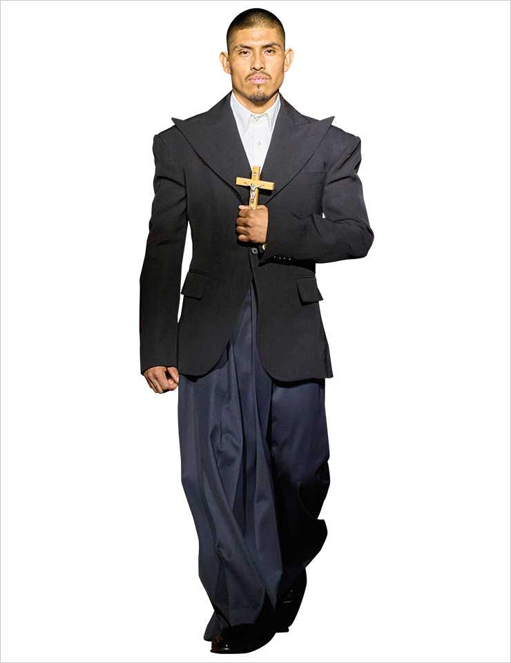 윌리 차바리아를 아시는지? 최근 내셔널 디자인 어워드 패션 디자인상을 수상한 윌리 차바리아는 히스패닉계 미국 유스컬처에서 영감을 받은 옷을 디자인한다. 평소 인종·문화적으로 소수에 속하는 이들의 목소리를 대변하며 컬렉션을 구성하는 그의 2023 S/S 컬렉션은 뉴욕 마블 콜리지 교회에서 열렸다. 스페인어로 연주하는 아카펠라와 함께 쇼가 시작됐는데, 국경이나 분열, 전쟁처럼 우리를 분리하는 것에 대한 노래라고. 시그너처 스타일인 와이드 팬츠와 축구 유니폼, 과장된 실루엣의 룩이 주를 이뤘다. WHO’S NEXT