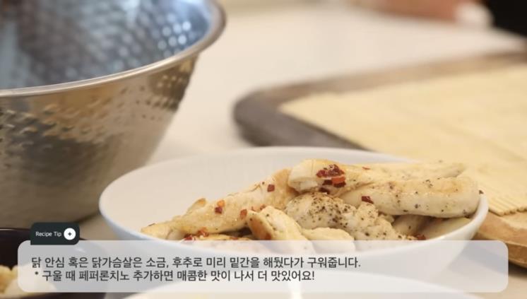 3. 밑간을 해둔 닭가슴살을 구워준다. 페퍼론치노로 뿌려 매콤함을 추가한다.