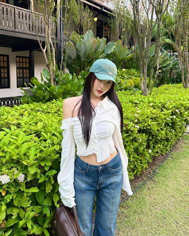 심플한 코디에도 컬러 캡으로 분위기 UP!