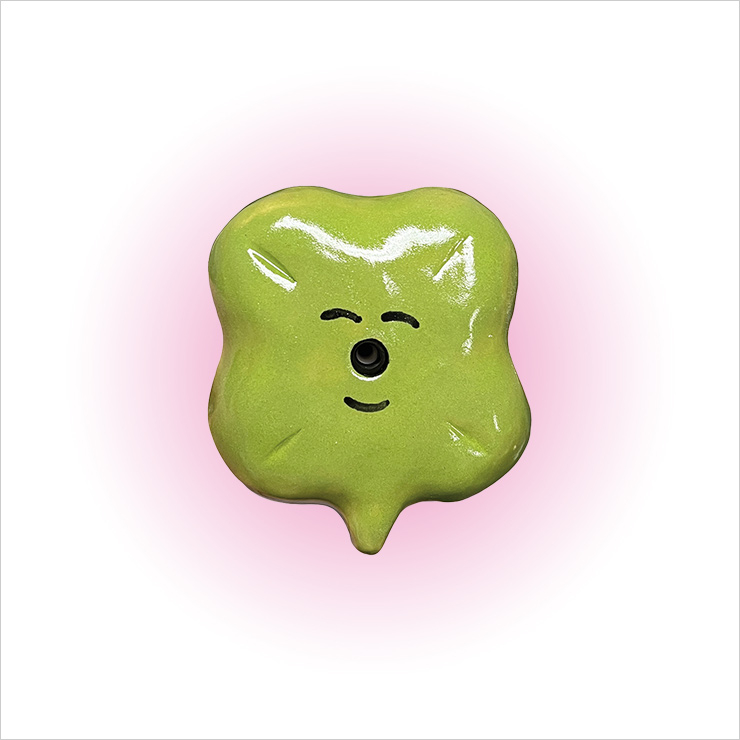 네 잎 클로버 코에 스틱을 끼워 사용하는 도자기 인센스 홀더. 인센스 스틱을 꽂을 때마다 보게 되는 수더분한 미소와 동글동글한 잎 모양에 피식 웃음이 나온다. 수작업으로 만들어 완전히 똑같은 제품은 없다는 점이 더욱 특별하다.