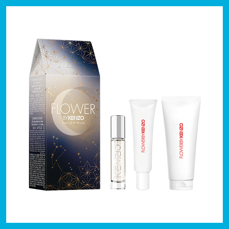 ‘플라워바이겐조’의 파우더리한 플로럴한 향을 다채롭게 즐길 수 있는 미니어처 향수, 보디로션, 핸드크림으로 구성된 세트.