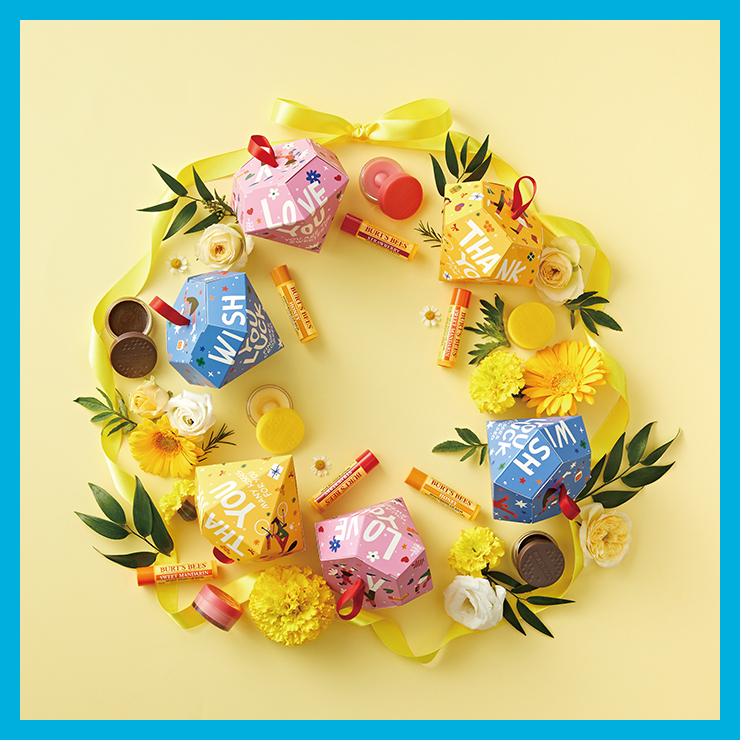 크리스마스 오너먼트로도 활용 가능한 패키지의 립 케어 듀오 세트. 립 트리트먼트, 립 스크럽, 립밤 3가지 조합으로 구성했다.