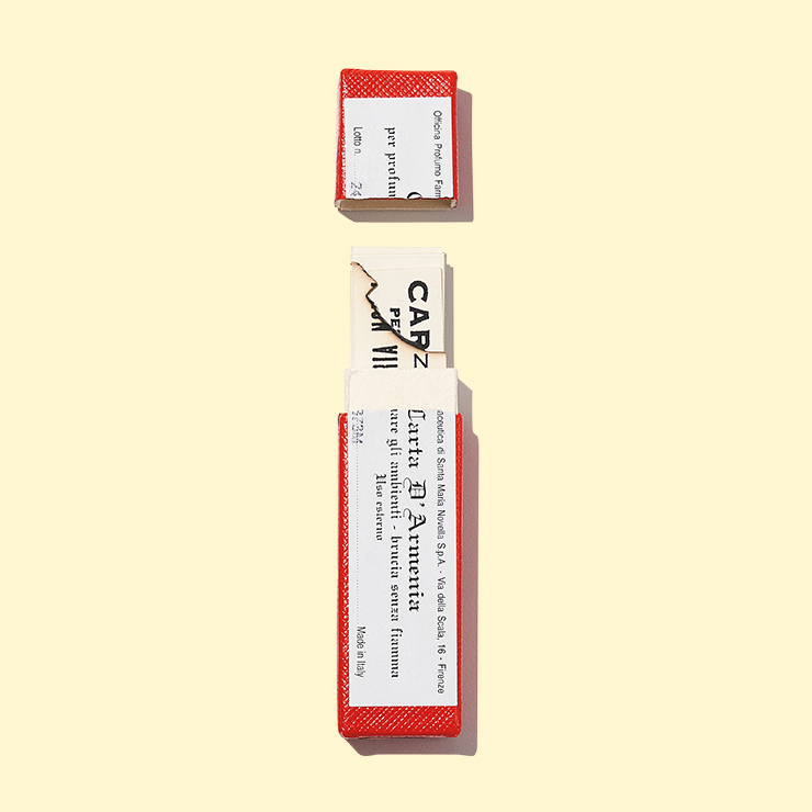 레진과 스파이시한 동양 향신료를 혼합한 페이퍼 인센스. 태워서 사용할 수도 있지만 옷장이나 서랍에 비치하면 수증기가 공기를 정화하며 달콤한 향이 공간에 자연스레 스민다.