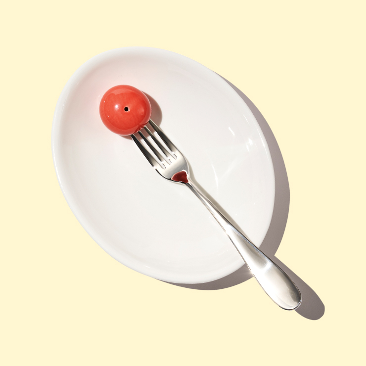 키치한 디자인이 돋보이는 인센스 홀더. 접시에 하나 남은 방울토마토를 모티브로 포크를 놓는 방향과 위치에 따라 다양한 방식으로 연출할 수 있다. 접시가 큰 편이라 타고 남은 인센스 재가 밖으로 떨어지지 않는다.