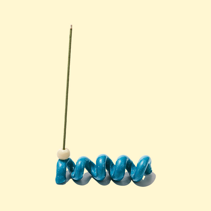 팝한 컬러와 독특한 나선 형태의 인센스 홀더. 향꽂이뿐만 아니라 반지를 거치하는 링 랙으로도 활용할 수 있다.